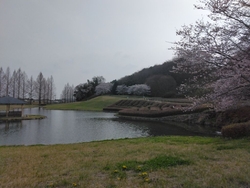 スポーツやバーベキューが楽しめる公園。桜の他に山の斜面に咲く満開のツツジも見応えあり!「花の滝」と呼ばれています。
