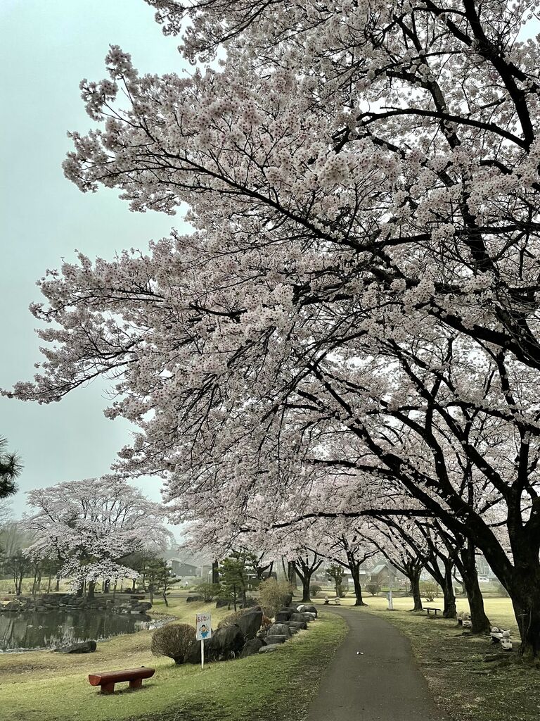 桜が満開です。園内を一周出来るウォーキングコースや川の堤防の並木が美しいです。天気が曇りで残念ですが、晴れて青空であれば、桜の花のピンク色とのコントラストが楽しめた筈。今週末までは楽しめそうです^_^ (訪問:2026/04/07)