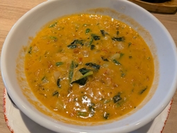 サルシッチャのグリル・カボチャのタルト・たっぷり野菜とひき肉のミネストローネ・パンをいただきました。お誕生月の先月、お伺いした時にいただいたカードを持って、わくわくしながらお伺いしました。前菜は店員さんが持って来てくれた別メニューから、サルシッチャのグリルをチョイス。ケーキは、なんと!テーブル上のメニューのデザートページのケーキから何を選んでも良いとのこと。なのでもちろん、かぼちゃのタルトを選ばせていただきました。サルシッチャのグリルは、鉄板の上で熱々で提供。ぱりっとしていて激旨です。添えてあるじゃがいももほくほくでおいしい。ミネストローネも、具が素晴らしくたっぷり。美味しい上に栄養満点。頼んで良かった一品です。パンもこんがりと香ばしくておいしい。お行儀良くないけど、ミネストローネをちょこちょこ付けながらいただきました。そして、かぼちゃのタルト。まさかいただけると思ってなかったので感動です。かぼちゃの風味、甘み、食感、ボリューム、どこから見ても素晴らしいです。これが今日は無料なんて!!年齢とともに喜びが減りつつある誕生日ですが、来年の誕生月もお伺いすること決定です。 (訪問:2025/10/03)