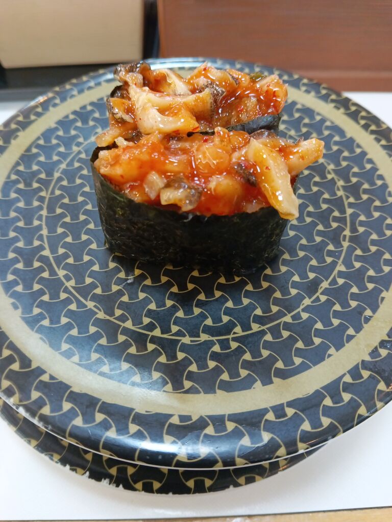 大トロ100円って事で夕飯は久々にはま寿司に来ました。夜9時過ぎでしたが金曜のせいかそれとも大トロ100円だからか待つほどではなかったけど奥の席になるまで人が多かったです。もちろん一番目に大トロを。久々の大トロいつ食べても美味しかったです。あと大粒ホタテも100円なので焦がし醤油のものを頼みました。あとお気に入りの天ぷら系。今回はレンコン天。ここの天ぷらは揚げたてを出して頂けるので美味しいんですよね。ただ混んでたせいか来るのに時間かかりました。揚げ物だから仕方ないんでしょうけど。で、懲りずにカリカリポテト新フレーバー?なのかわさび&ビーフ味をオーダーしました。こちらは6分くらいで来ました。ピリ辛で美味しく頂きました。またとろが100円の時にでも来たいです。ご馳走様でした。 (訪問:2025/06/13)