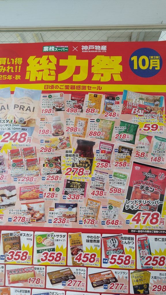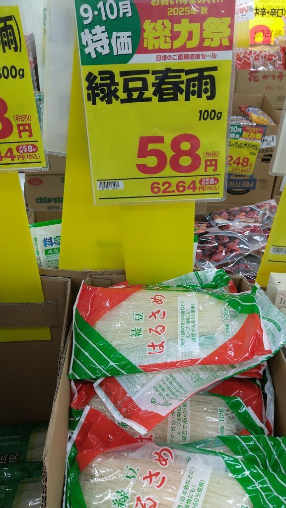 ¥110の5食入りの讃岐うどんをお目当てにPM3時頃来店。いつも購入するうどんが今月は驚異のお値段。しかしながら、そのうどんコーナーは、スッカラカン(¯―¯٥)お店の方に尋ねたら、本日は、もう売り切れ...との事で残念。まだ日数があるので、今月また足を運ぼうと思いますが、その¥110の値札を目にした時「本当に¥110だ」と、ビックリしました。春雨さまも安いんです。最近、春雨と肉団子のスープを良く作るのでそちらも購入。うまい棒も夢の大人買い。業務スーパーさまさまです♡ (訪問:2025/10/18)
