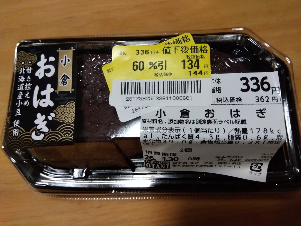 うっかり玉子を買い忘れてしまいお仕事帰り20時過ぎ頃に来店したところ…な〜んとお刺身が激安〜☆☆☆あまりにお安かったのでつい衝動買いしちゃいましたぁ(^^ ;)マグロとサーモンを早速いただいたところ…う〜んま〜いっ!(≧▽≦)♪脂が程よくのっていてお口の中でね〜っとり旨味が広がりましたぁ〜☆そうそうおはぎも甘さ控えめでと〜っても美味しかったです( ꈍᴗꈍ)♪買い忘れた玉子に感謝です〜(^人^)☆ (訪問:2026/01/29)