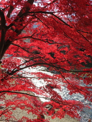 紅葉は終盤でしたが、山紅葉の赤がとてもきれいでした。夜のライトアップもいいですが、私はやっぱり青空の下の紅葉が好きですね。 (訪問:2025/11/16)