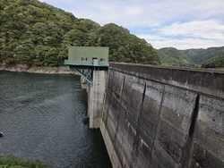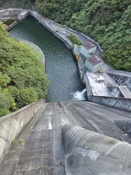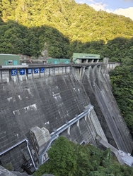 この日の五十里湖は、大変落ちついた佇まいを見せてくれました。資料館では、五十里湖の歴史や、建設過程を学べる事が出来る映像を見る事が出来て大変勉強になりました。本体着工1950年、完成年1956年だそうです。 (訪問:2025/09/21)