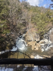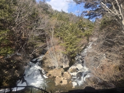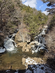 真冬の竜頭の滝です。やはりこのスポットは、紅葉時期ではないにもかかわらず、観光客が早朝から来ていました。外国人の家族連れもいました。皆さん手に手にスマホで写真撮影を、していました。滝が多少、氷はじめていました。また、竜頭の滝の滝上からも見てその豪快さに圧倒されました。 (訪問:2025/12/30)