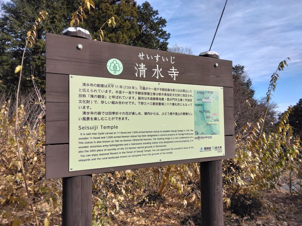清水寺の創建は天平元年、行基が十一面千手観音像を彫り込み開山したと伝えられています。十一面千手観音像は栃木県指定重要文化財に指定され、別称「滝の観音」と呼ばれています。下野板東26番札所にもなっています。