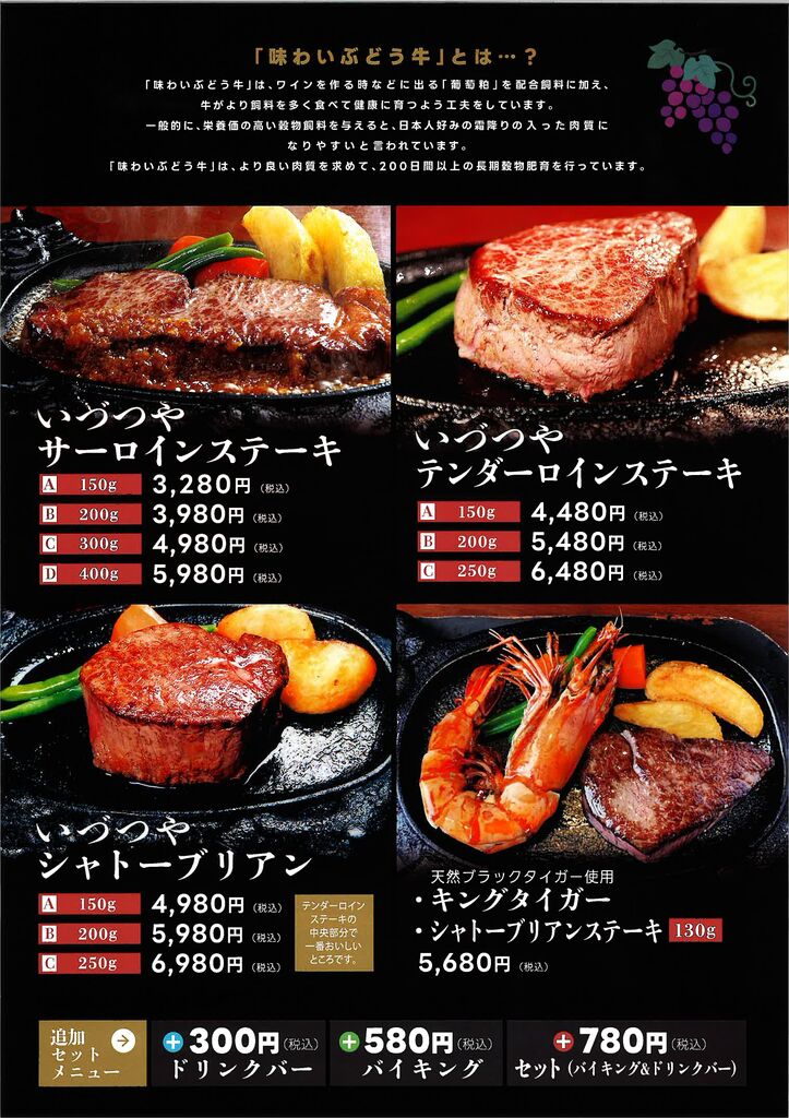 宇都宮市のステーキ・ハンバーグ・洋食・レストラン・バイキング クチコミ1078件 ステーキイヅツヤ (有)ステーキ いづつや 050-7587-2095 050-7587-2095 お気に入り クチコミするキャンペーン中 基本情報 メニュー・クーポン クチコミ 写真 地図 最新情報 求人 ハンバーグ ステーキ その他にも! ステーキ ランプステーキは長岡店限定メニューです。 バイキングは長岡店限定です。 バイキングは長岡店限定です。 ハンバーグ ステーキ その他にも! 栃ナビ! 栃木県のお店・スポット情報 食べる 洋食 ステーキ・ハンバーグ (有)ステーキ いづつや ステーキ