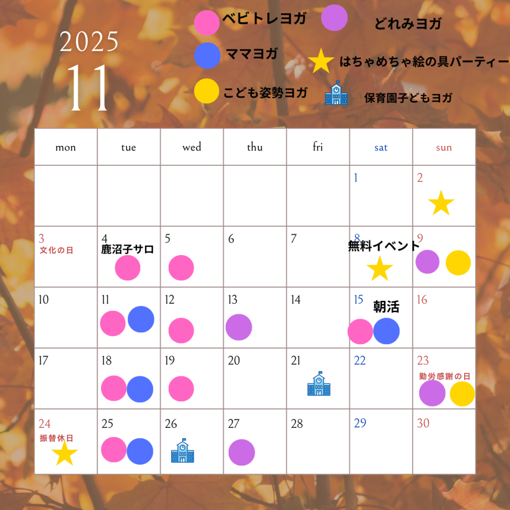 秋限定ニュース 11月レッスン予定(25/11/04) UP