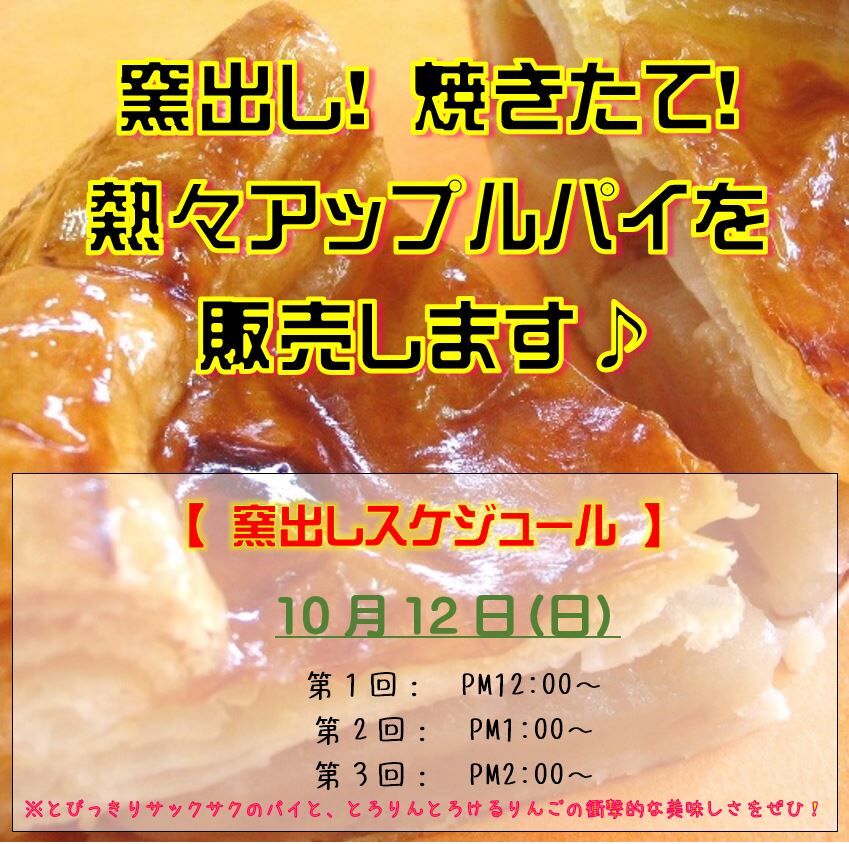 秋限定ニュース 窯出し! 焼きたて! アツアツのアップルパイを販売します!(12/12のみ)(25/10/10) NEW