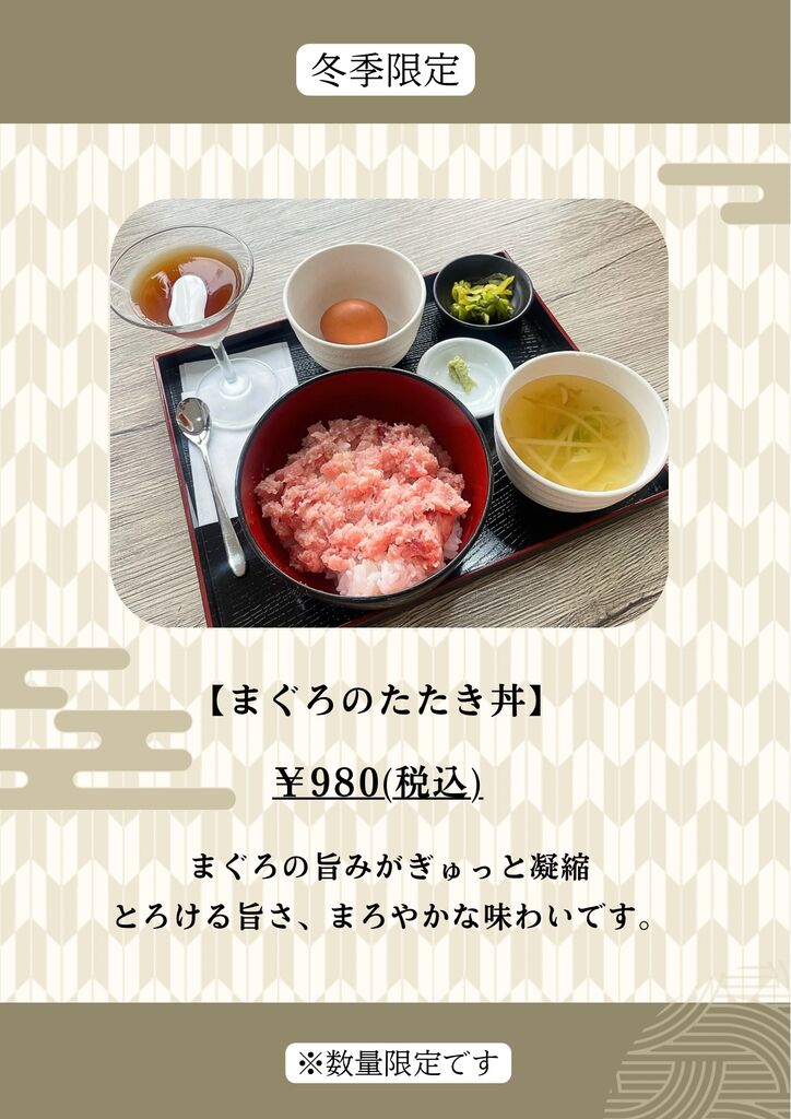 新サービス 葵食堂 上三川町【明日11/9から✨】まぐろのたたき丼はじまります!(25/11/08) UP