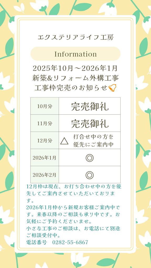 栃木市のガーデン・エクステリア・リフォーム・ガーデニング・造園・園芸 クチコミ15件 エクステリアライフコウボウ EXTERIOR Life工房 0282-55-6867 0282-55-6867 お気に入り クチコミする 基本情報 メニュー・クーポン クチコミ 写真 地図 最新情報 求人 EXTERIOR Life工房の最新情報 絞り込む ----- お知らせ 予約状況 臨時休業 クーポン 誕生日・記念日 イベント セール情報 テイクアウト 新サービス キャンペーン 求人情報 秋限定ニュース ハロウィンニュース 感染対策 ネットショップ 予約状況 工事のご予約状況のお知らせ(25/10/15) 工事のご予約状況のお知らせお陰さまでたくさんのご来店誠にありがとうございます!お早めに工事のご予約をお願いいたしますm(_ _)m "ぐッ"ときた! 0人 1 マイニュースに追加 お店・スポット最新情報 栃ナビ! 栃木県のお店・スポット情報 くらす 住宅・ガーデン・不動産 ガーデン・エクステリア EXTERIOR Life工房 ニュース
