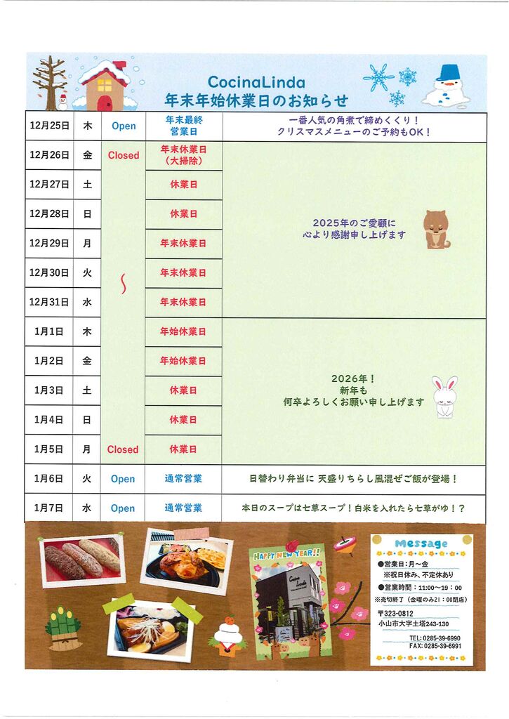 お知らせ 年末年始店休業日のお知らせ(25/12/03)