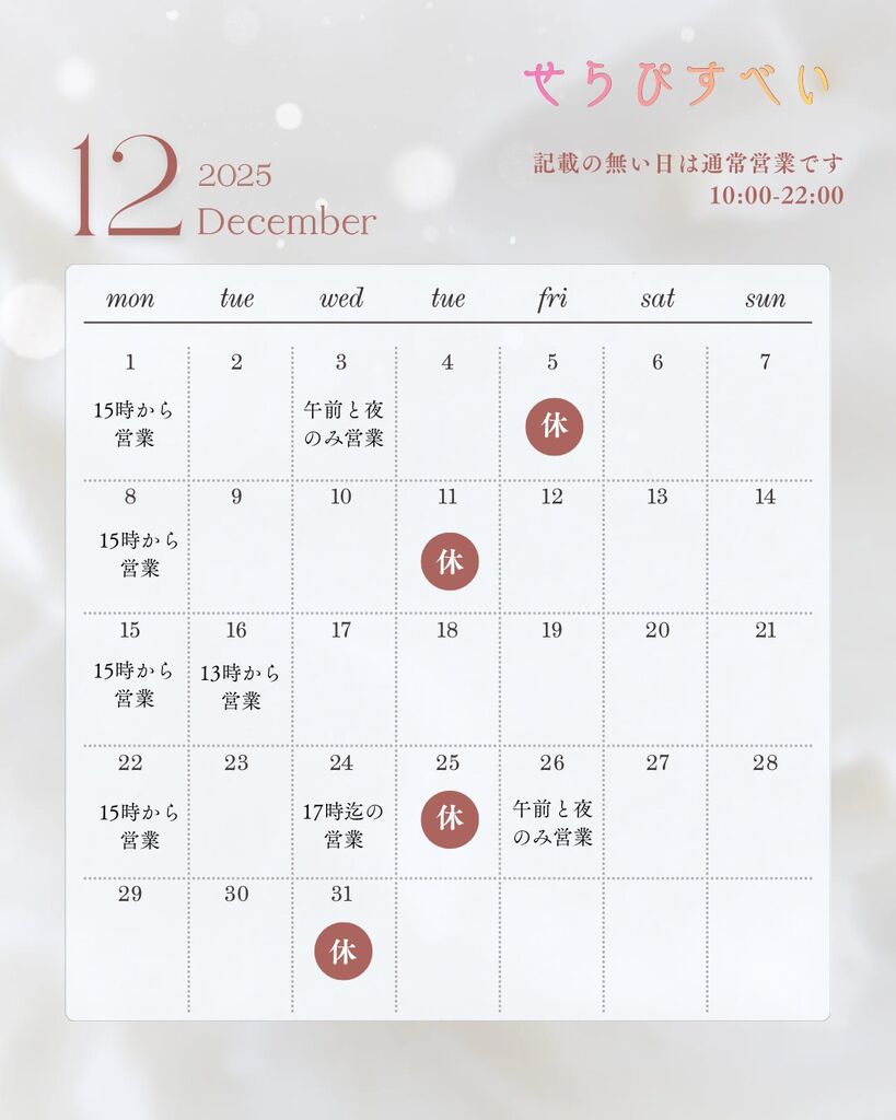 営業カレンダー、記載の無い日は平常営業です。"ぐッ"ときた! 2人