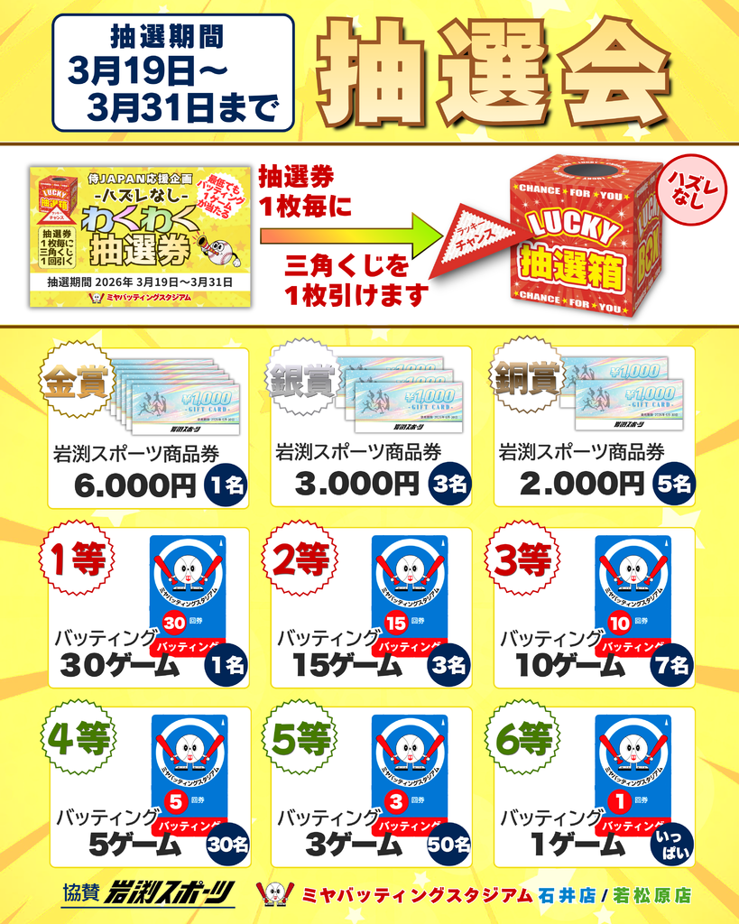 3/19~ 抽選会 開始です!!