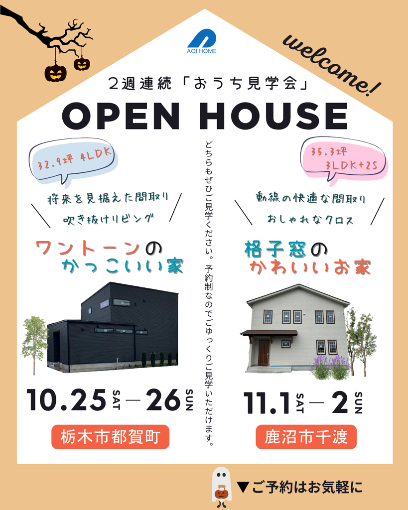 【2週連続】見学会✨栃木市都賀町10/25㊏26㊐✨鹿沼市千渡11/1㊏2㊐(25/10/06)
