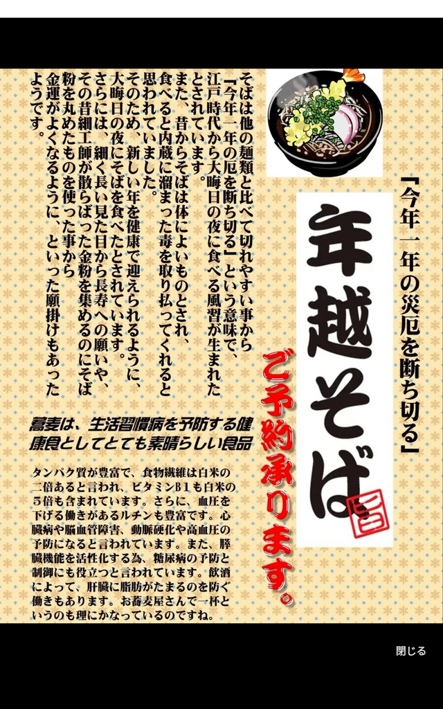 イベント 年越しそば ご予約承ります(25/12/19)
