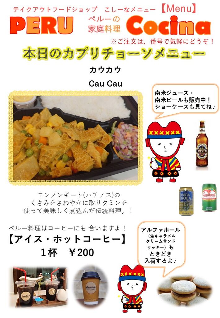 テイクアウト 本日のペルー弁当!!(25/12/12) UP