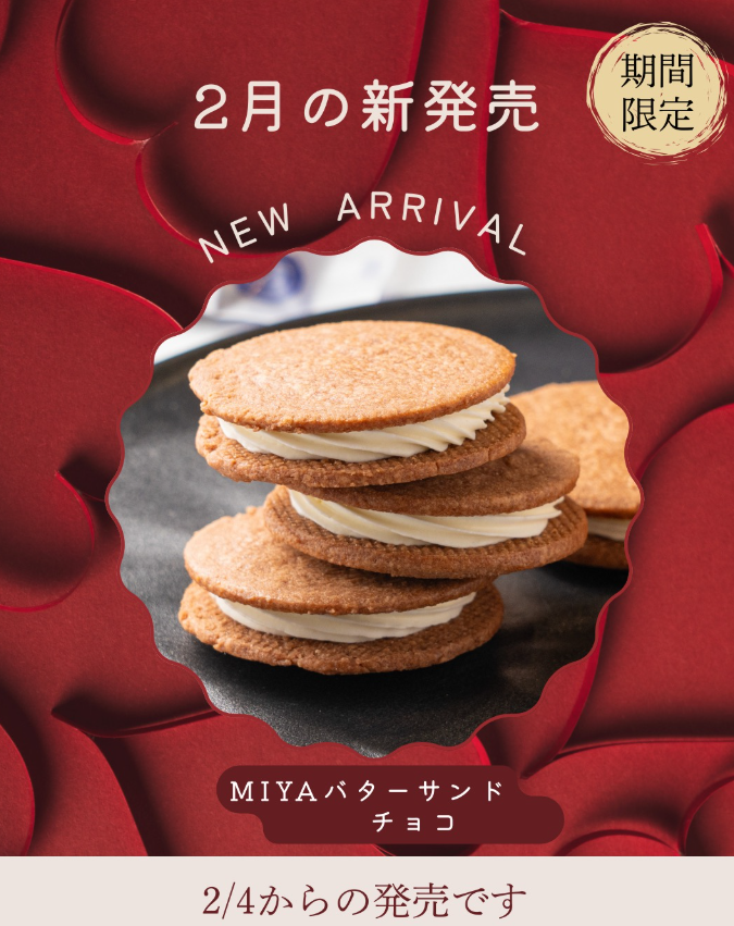 バレンタインニュース 【2月4日からの新発売♡】MIYAバターサンドチョコ(26/01/30)