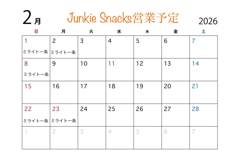お知らせ JunkieSnacks (26/02/01)