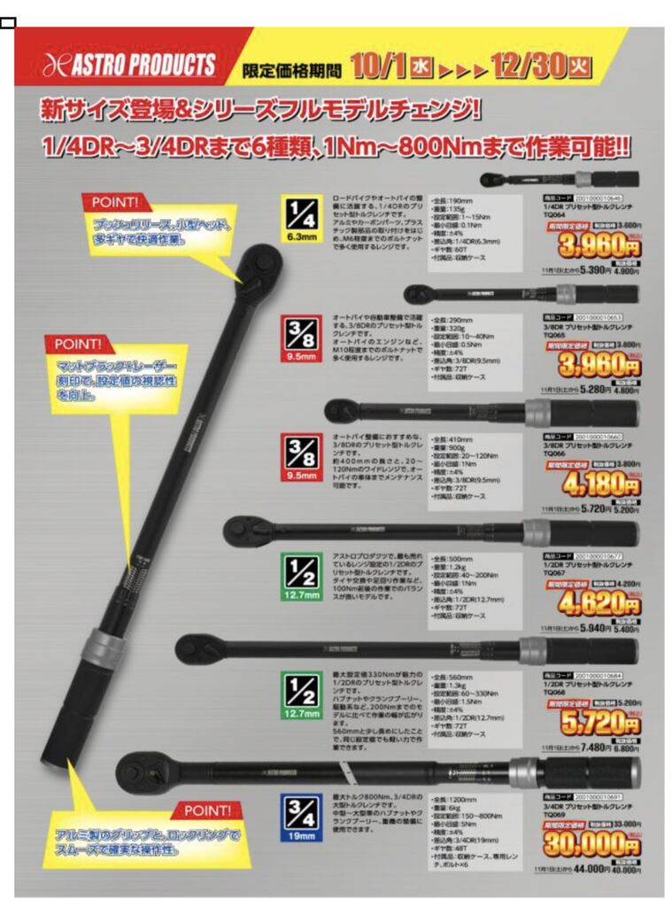 アストロプロダクツはトルクレンチのライナップを一新する事になりました❗️