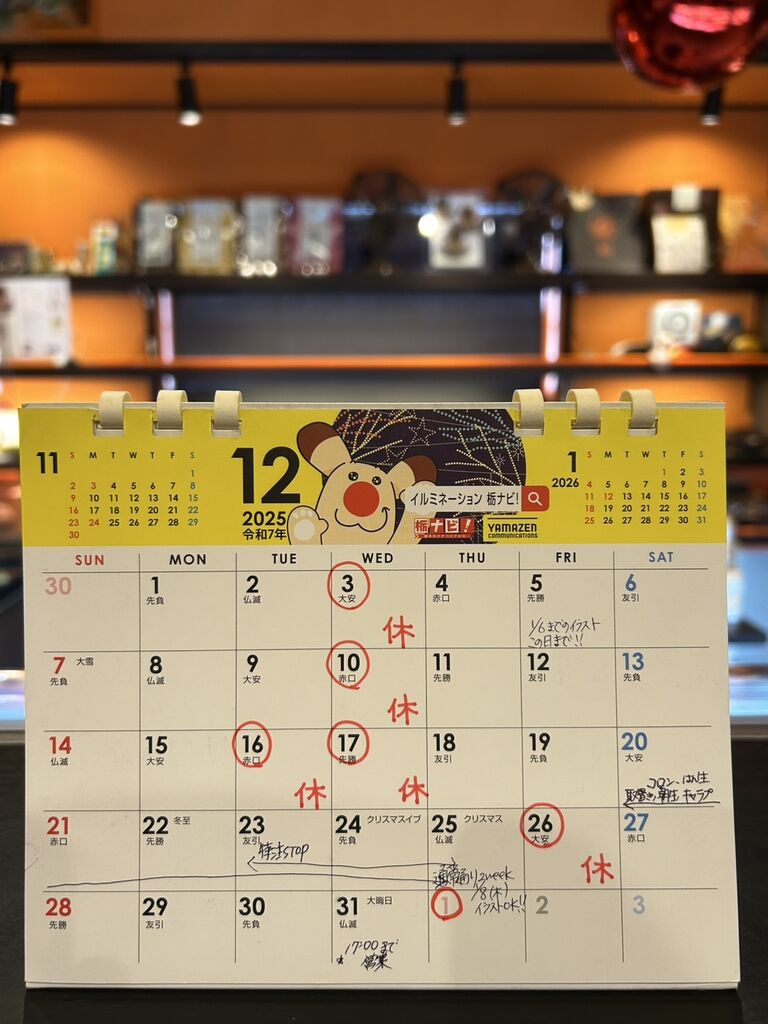 お知らせ ◇◆12月の営業カレンダー◇◆(25/12/11)