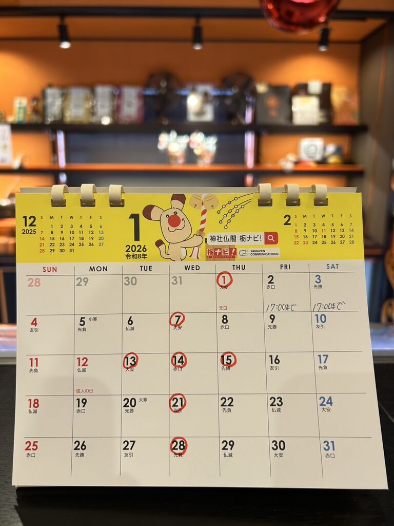お知らせ ◇◆2026年1月カレンダー◆◇(25/12/01)