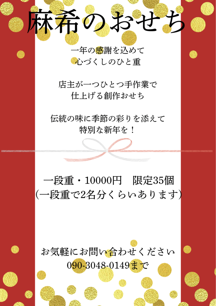 お知らせ 麻希の手作りおせち料理(25/10/26)