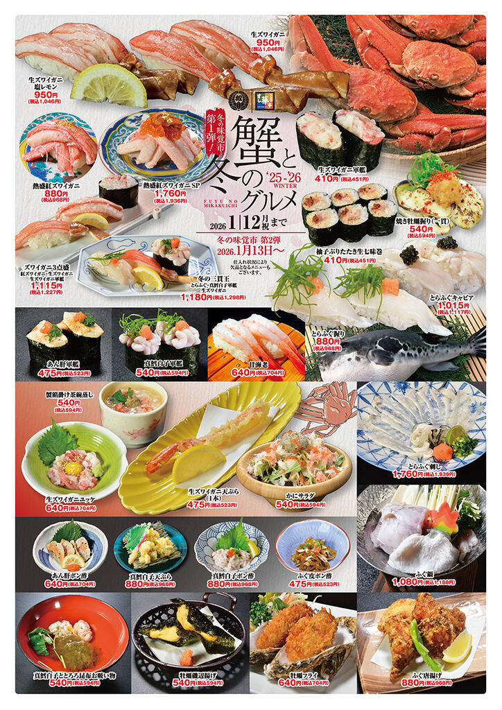 ※冬の味覚市は すし華亭長岡店・簗瀬店・自治医大店・宇都宮中央店で開催しております。