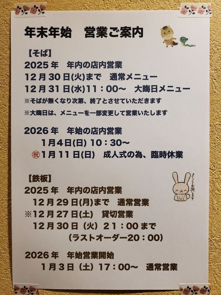 お蕎麦がなくなり次第終了とさせて頂きます。