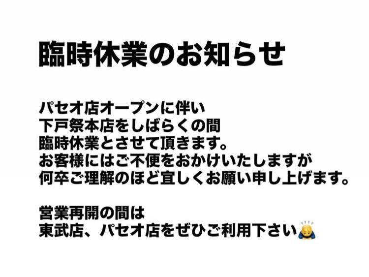 下戸祭本店はしばらくの間『臨時休業』とさせていただきます。
