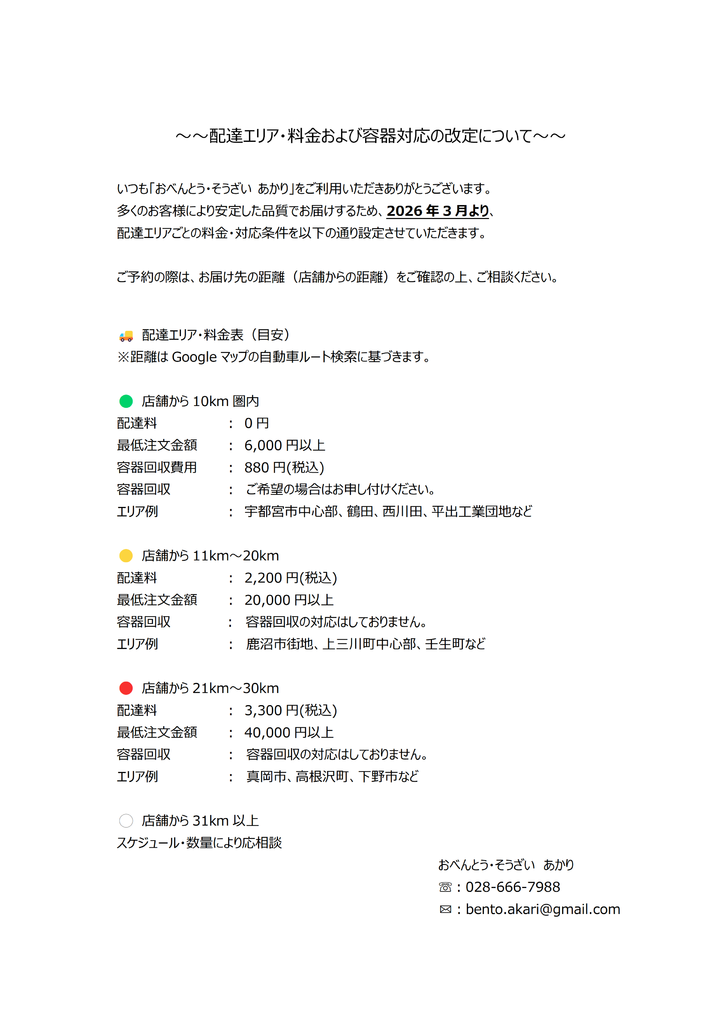 お知らせ 3月からの配達エリアと料金についてのお知らせ(26/02/13) UP