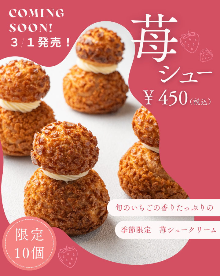 お知らせ 【3月の日曜日限定♡】苺シューが始まりました!(26/03/03)
