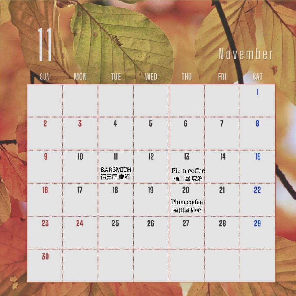 お知らせ 11月の出店日(25/11/13)