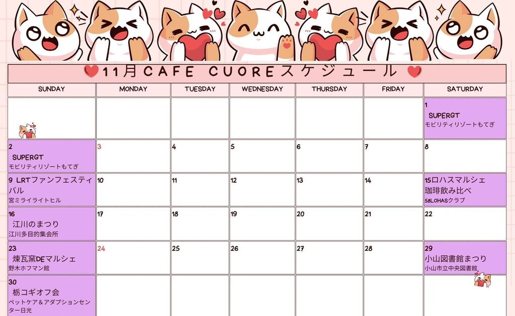 お知らせ 11月出店カレンダーです♪(25/10/30)