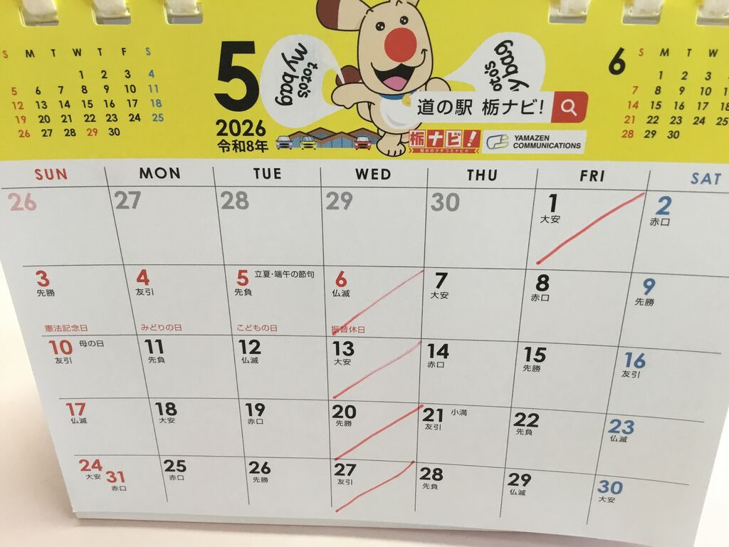 お知らせ 4月、5月営業日(26/04/16) NEW