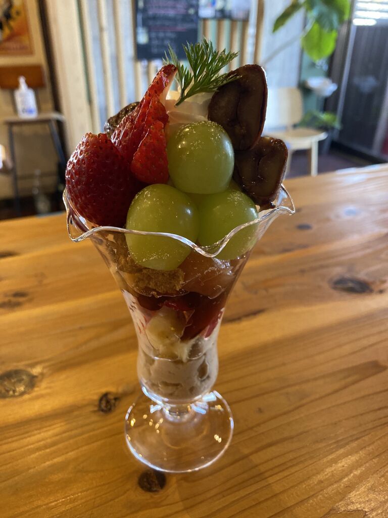 季節のイチゴやぶどう、柿、柑橘類をあしらい、とてもかわいらしい?パフェになりました。