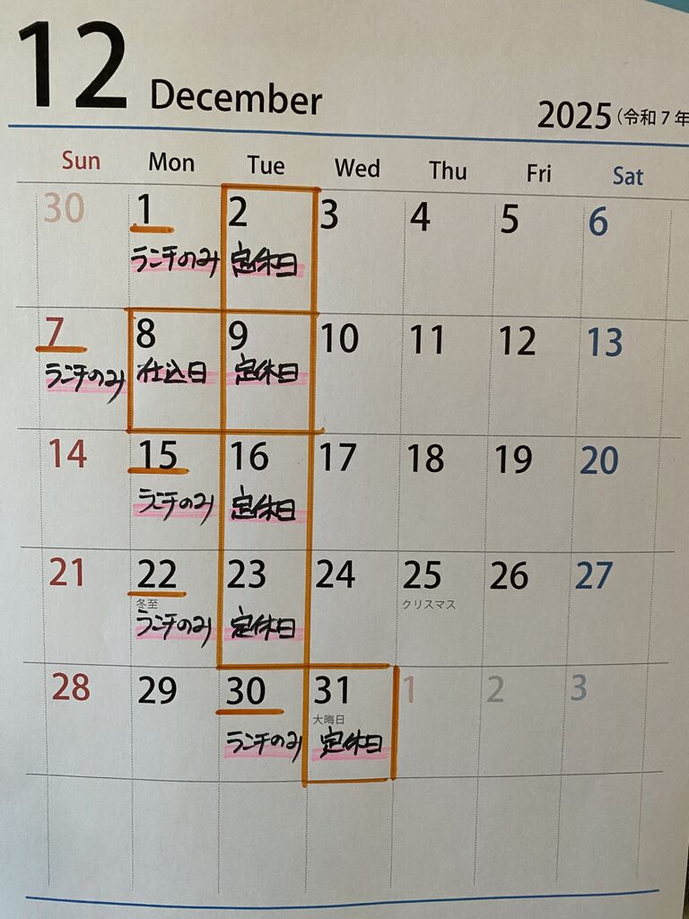 クリスマスニュース クリスマス限定コース(25/12/14) UP