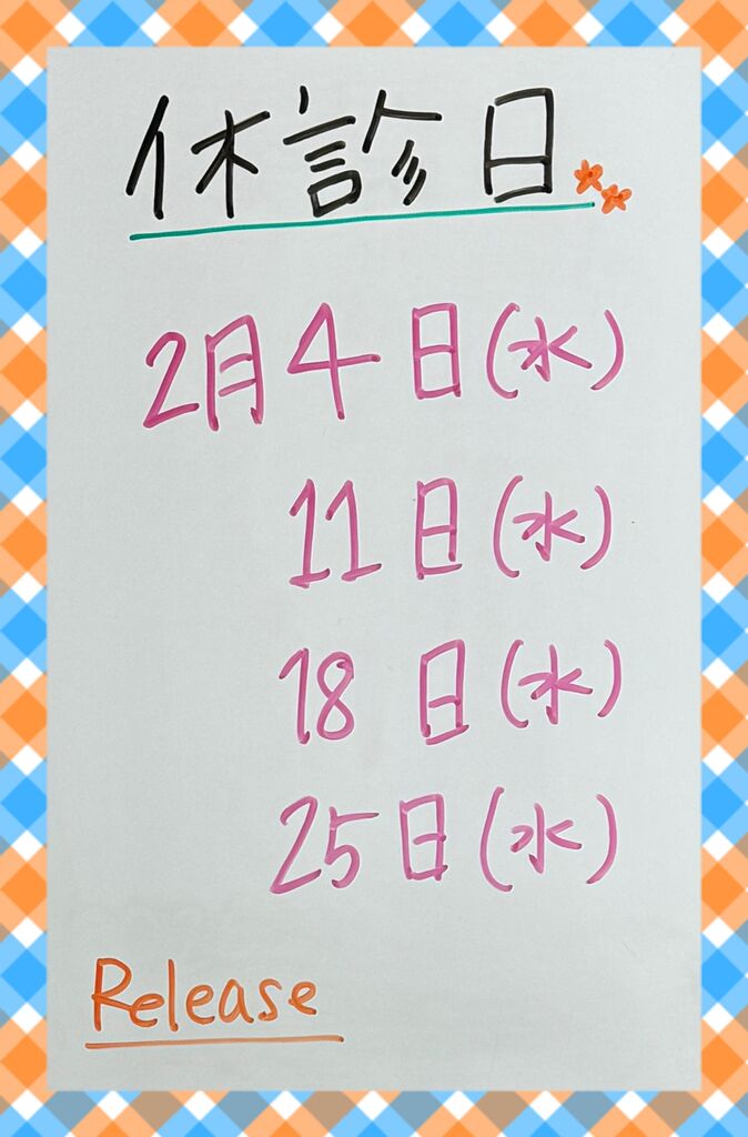 お知らせ 2月の休診日のお知らせ(26/02/13) UP