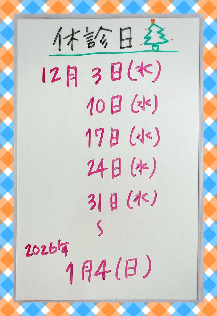 お知らせ 12月と年末年始の休診日のお知らせ(25/12/16) UP