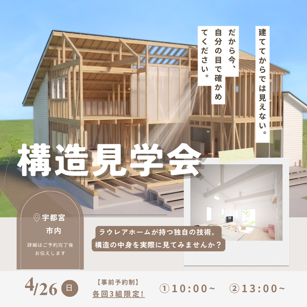 GW★SPECIALニュース 【宇都宮市】「今しか見れないヒミツを大公開」構造見学会開催!(26/04/16) UP