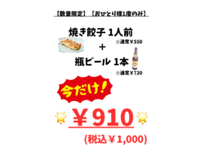 - イベント 葵食堂 上三川町【お得!✨】餃子ビールセットが¥1,000✨ (2026/03/12) UP