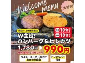 - 【本店でもスタート☆開店から30分限定!10食限定!】W主役!!ハンバーグ&ヒレカツを特別価格で! (2025/11/06)