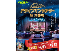 応募条件:2021/11/15 15:00 ~ 2021/11/29 23:59に ドライブインシアター in 大谷町 にクチコミを投稿すると応募可能になります。