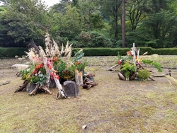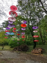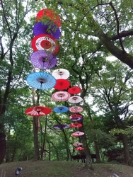 今年も、月あかり花回廊が始まるのを楽しみにしていました。イベントの初日、両親を連れて行こうと計画していましたが、夜は雨予報なので、昼に行ってきました。夜のライトアップも素敵ですが、森に和傘が飾られた昼の雰囲気も いい感じ(*^.^*)♪ 和傘のほかにも竹細工や、生け花、チェンソーアートのフクロウさんなど、いろいろ飾られていて楽しかったです。 (参加:2023/09/22)