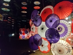 秋に開催される「月あかり花回廊」♪毎年のように出かけています。昨年は昼間に行き、緑の森に映えるカラフルな和傘を楽しみ、今年はライトアップされた夜に行ってきました。光で透ける和傘がとっても煌びやかで、とっても美しかったです。 (参加:2024/09/28)