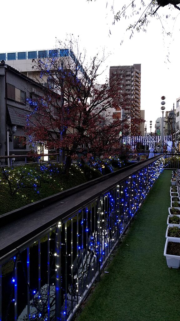 すっかり定着した、宇都宮市内のイルミネーション♪釜川沿いの写真です。毎年工夫を凝らし、これだけ綺麗な装飾をして楽しませてくれる事に、感謝でいっぱい(*˘︶˘*)です。今年は、暖かいためか、紅葉の赤色ともコラボです。耳に入ってくる川音と、ブルーの灯りが癒やしを与えてくれました。素敵でしたよ~!オススメスポットです。 (参加:2023/12/13)