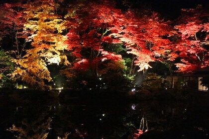 江戸時代に作られた風光明媚な庭園が、夜になると色鮮やかにライトアップされ、よりー暦優雅な情畏が広がります。