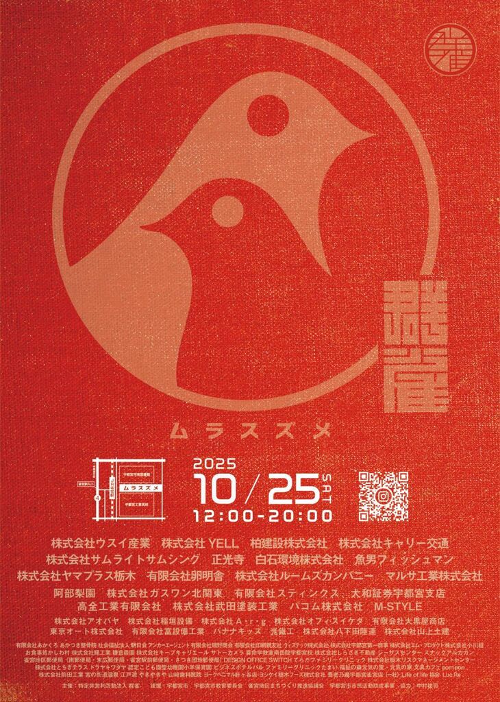 2019 年まで開催していた群雀プロジェクト【夜祭】の意思を受け継ぎ、回覧板や地元メディアに取り上げられて地域の幅広い年齢層の方々にご来場頂き、昨年1万人規模のお祭りに! 更に地元を活性化させ、みんなで創り上げる【ムラスズメ】を通じて、地域に新しい景色を広げ、地元雀宮の魅力の開発を可能性を未来に広げていくことを目指します!