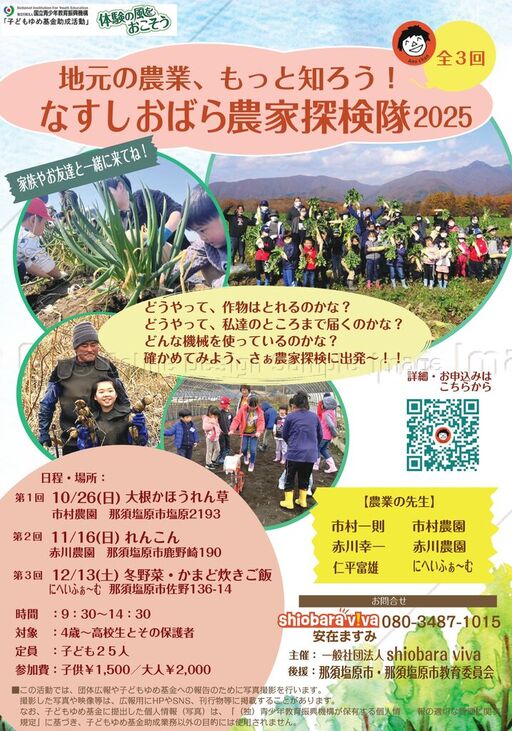 開催日:2025年10月26日(日) 終了日:2025年12月13日(土) 10/28(日) 高原大根かほうれん草 11/16(日) れんこん 12/13(土) 冬野菜・かまど炊きご飯 |