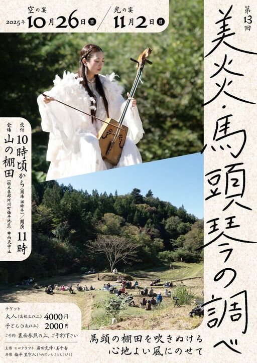 那珂川町の昔ながらの山の棚田で開催される馬頭琴コンサート。